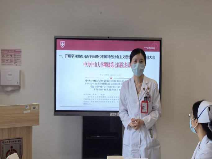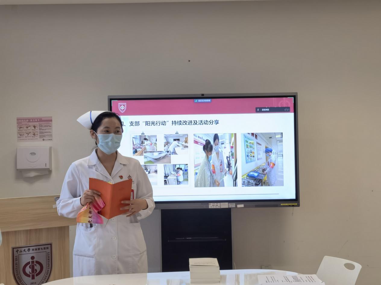 为进一步加强支部所辖科室的人文建设和6S全方位管理,营造安全、整洁、有序的工作和人文环境,同时有效解决“有些患者因医护人员太忙碌不敢打扰、有些疑问不知道如何咨询”的问题,支部安排党员、发展对象和入党积极分子进行轮值,推进人文建设质量持续改进行动。支部组织委员田彩群同志在会上分享了“阳光行动”开展情况及活动心得。从2022年7月至今,支部在肿瘤科试点开展的“阳光行动”取得了一定成效,今年6月份起“阳光行动”将在支部所辖科室全面铺开,坚持党员带头示范,引领全员积极参与,以支部引领示范推动科室人文建设与发展。