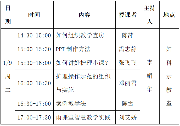 培训班授课安排