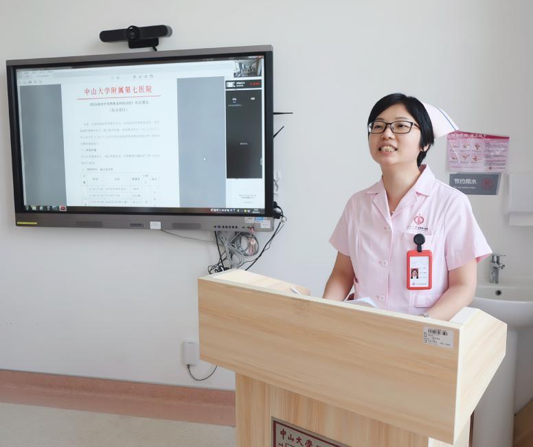 儿科刘艾娇护士长分享了《雨课堂智慧教学实践》,他用全新的授课理念,打破了以往的授课模式,精彩有趣的互动为课堂增色不少,提升了授课的质量和学员们的满意度。
