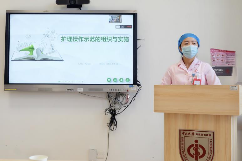 曾经带教中山七院参加深圳静脉输液比赛并获奖的儿科教育护士邓丽君护师,用她的丰富的临床教学实践讲解了《护理操作示范的组织和实施》,讲述了临床操作示范的要求和重点。