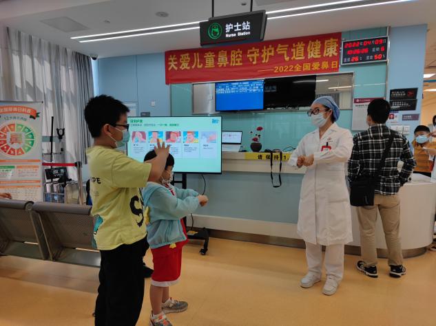 每年四月的第二个星期六被定为"世界爱鼻日",2022年4月9日是全国第二十个爱鼻日,今年的主题为“关爱儿童鼻腔,守护气道健康”。近年来,儿童变应性鼻炎患病率呈显著上升趋势,常常合并哮喘、儿童鼻窦炎以及腺样体肥大,这类疾病严重地影响了患儿们的日常学习和生活。为强化大众对儿童呼吸道健康和鼻部疾病的关注,耳鼻咽喉科近日在我院门诊诊疗区开展了相关科普活动,此次为耳鼻咽喉科“深圳市三名工程”项目引进后首次围绕项目主题开展专科疾病知识宣讲。