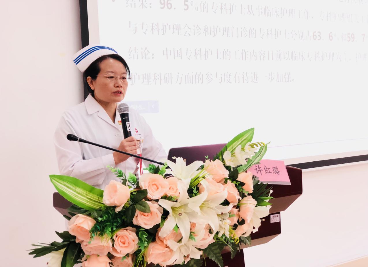 我院护理部许红璐主任在开班仪式上致词,她说道:希望学员们能端正态度,学习了解本领域中的专科知识、技能和国内外的最新进展,大家能按规范化要求,切实落实、发挥好专科护士的行业标准及价值,同心协力发展好专科。她同时也表达了自己对专科发展的支持与厚望。