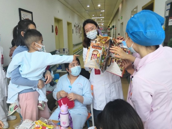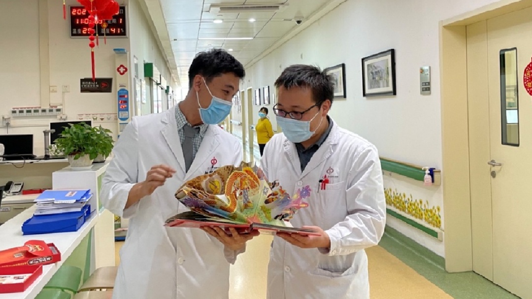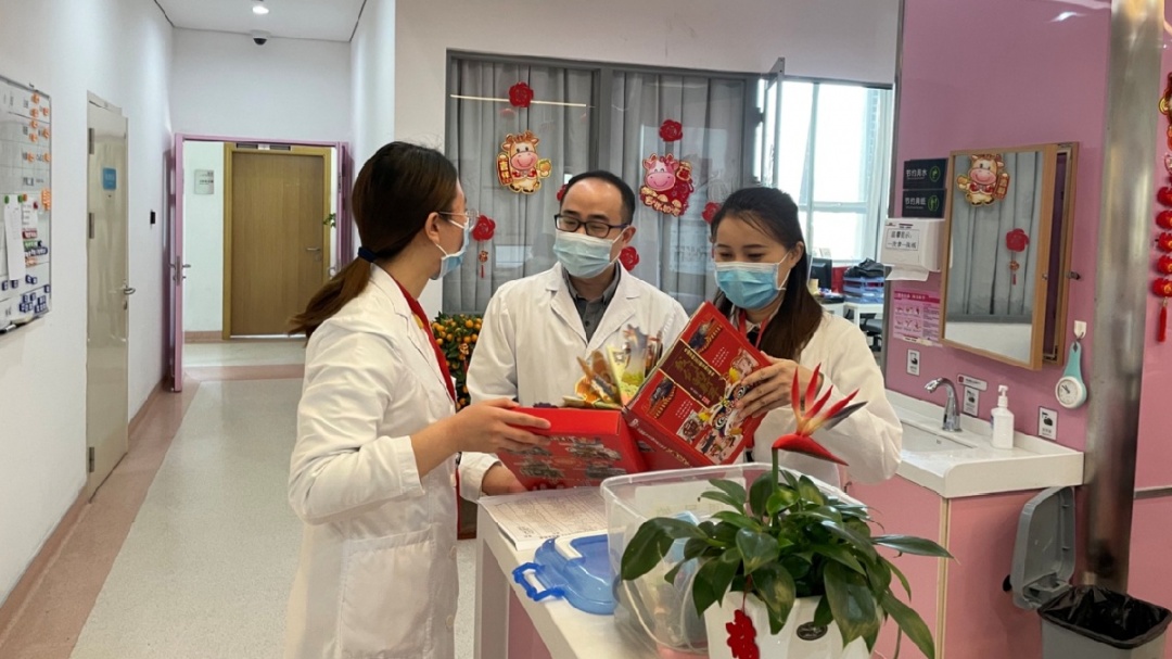 自新冠肺炎疫情以来,我院医务人员肩负疫情防控和日常诊疗的任务,在新春佳节仍然坚守岗位,勇担重任,为抗击疫情和维护人民健康做出了重大贡献。医学人文部、医务社工和志愿者服务部和工会办公室始终关切我院职工的身心健康和福祉,2月8日,三部门一行走访了全院33个科室,为153名有5~8岁子女的职工送上新春绘本《我们的新年》。《我们的新年》用全景立体展示的新颖形式,介绍了中国各地的新春习俗,是传承传统文化,陪伴孩子共度佳节最好的新春礼物。本次赠送的绘本由新浩爱心基金会提供。