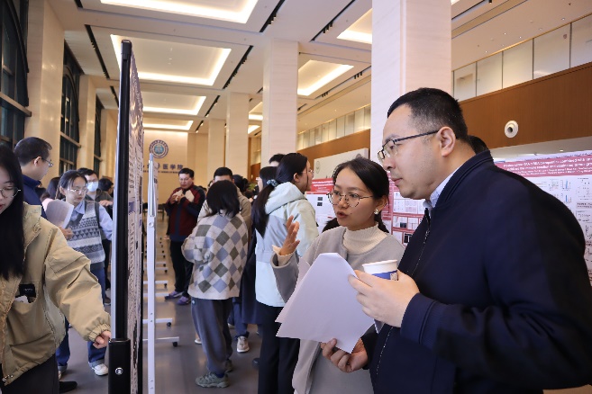 展示期间,入围的参赛选手们向前来观展的师生详细介绍,并就自己研究领域的相关问题进行探讨,评委专家们对其进行点评指导,现场交流热烈,学术氛围浓厚。