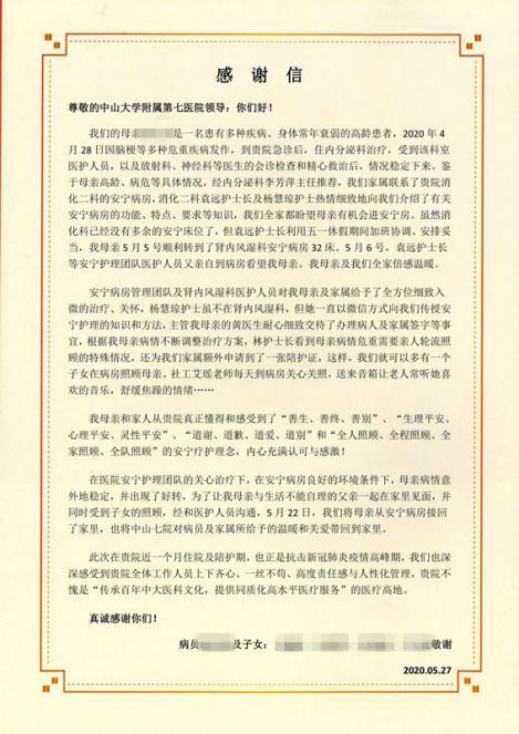 出院患者家属感谢信