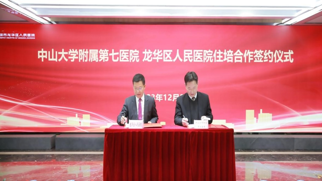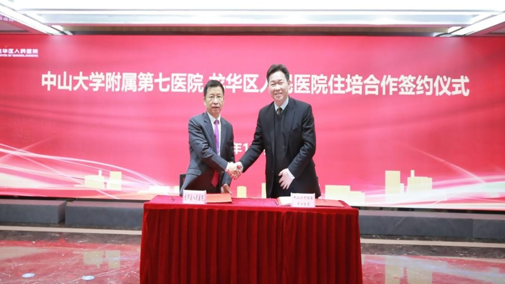 仪式上,两院签署《中山大学附属第七医院与龙华区人民医院住院医师规范化培训协同培养协议书》、《中山大学附属第七医院与龙华区人民医院民治社康服务中心/民治区域社康中心联合开展住院医师规范化培训协议书》。
