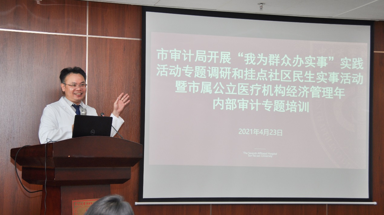 4月23日下午,由深圳市审计局、卫健委主办,我院协办的“我为群众办实事”实践活动暨经济管理年内部审计培训班在我院举办。此次活动由市审计局综合计划处宿瑜处长主持,市审计局党组成员、总审计师宋令芳同志,市卫健委一级调研员、财务处侯力群处长,市卫健委财务处印婵副处长,我院陈起坤副书记、潘逸航副院长、总会计师陈财柳同志及相关领导出席此次活动。委属各医疗单位、马田街道内审人员、会计师事务所等共42家单位113人参与此次培训。