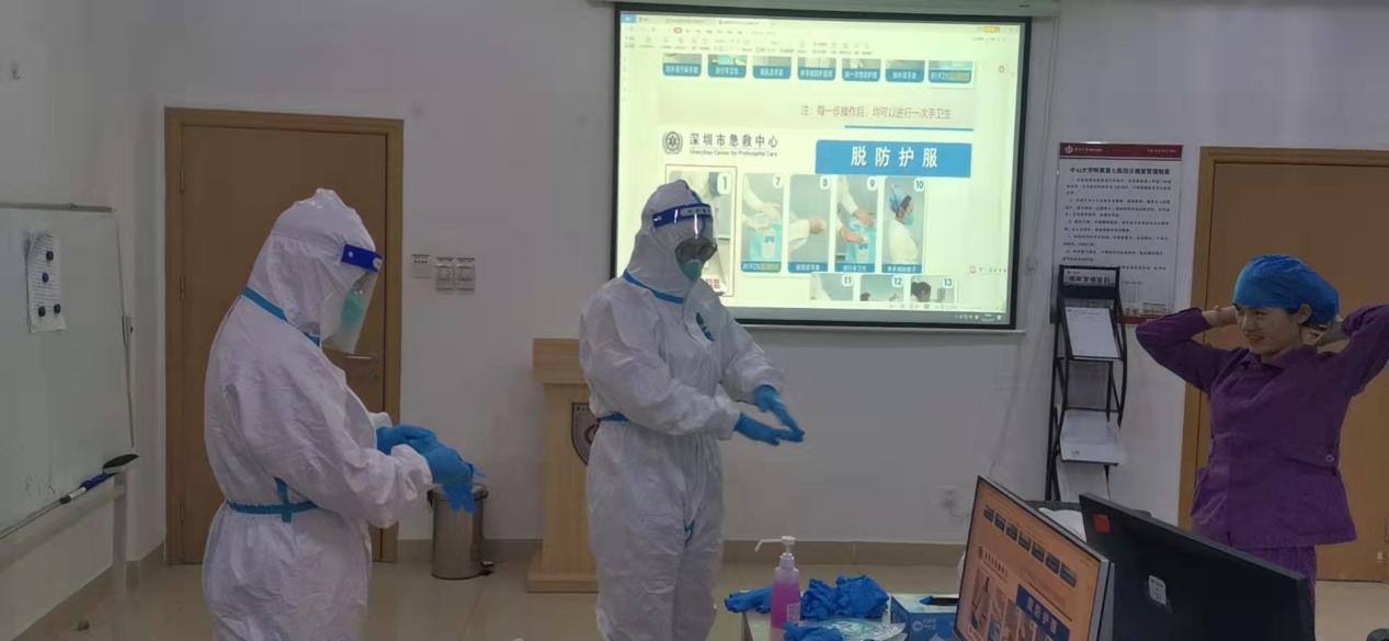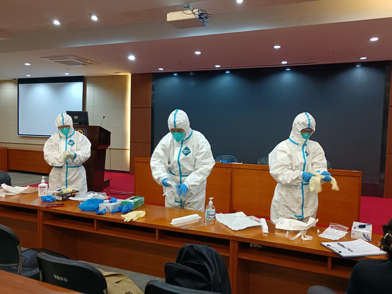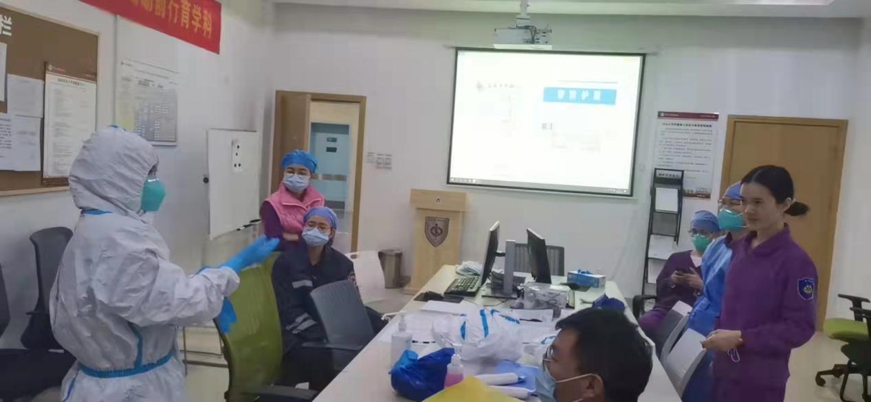 为了圆满完成转运任务,也为了保证所有参加转运工作的医护人员的安全,急诊科组织进行了严格的培训和考核。大家在紧张繁重的临床工作之余,还需学习120转运相关理论知识和院感知识,并练习穿脱防护服。为了不影响医院的正常运转,负压转运培训时间集中安排在医护人员夜间值班结束后。培训老师利用休息时间准备课件,在夜班结束后给转运人员进行培训。即使参加转运的人员是在结束了繁忙的夜间工作后投入到培训中,但他们态度认真,一丝不苟,将夜间工作的疲惫抛之脑后,并在培训中反复练习,十分投入。