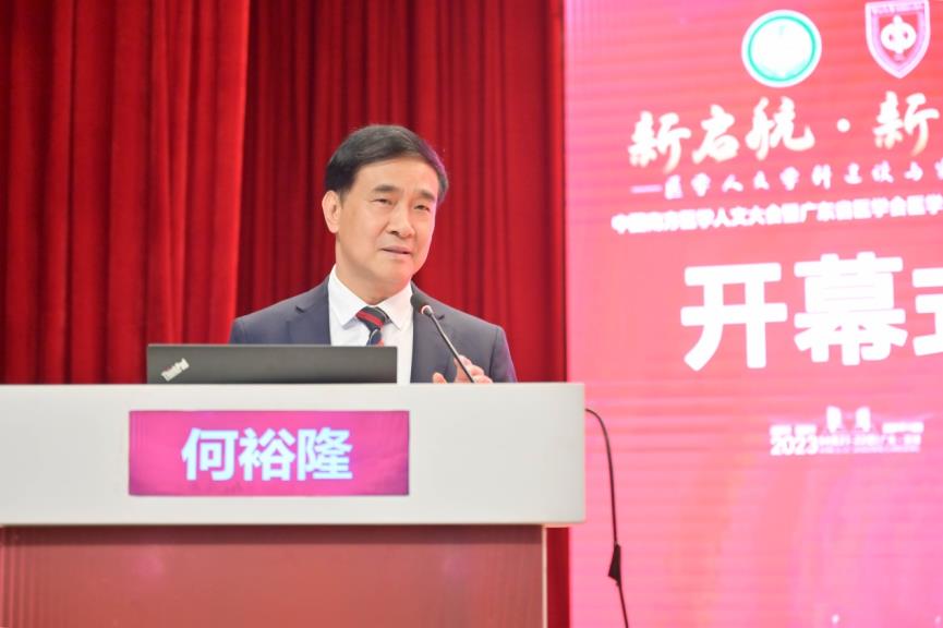 广东省医学会会长姚志彬教授,南方医科大学党委副书记、校长黎孟枫教授,广东省卫生健康委员会体改处蔡秋茂副处长等嘉宾出席大会和致辞。中国工程院院士钟南山教授,教育部高等学校医学人文素养与全科医学教学指导委员会主任委员、河北医科大学党委书记翟海魂教授和中国医师协会医学人文专业委员会常务副主任委员、中国协和医科大学袁钟教授为大会发来视频致辞和贺信。