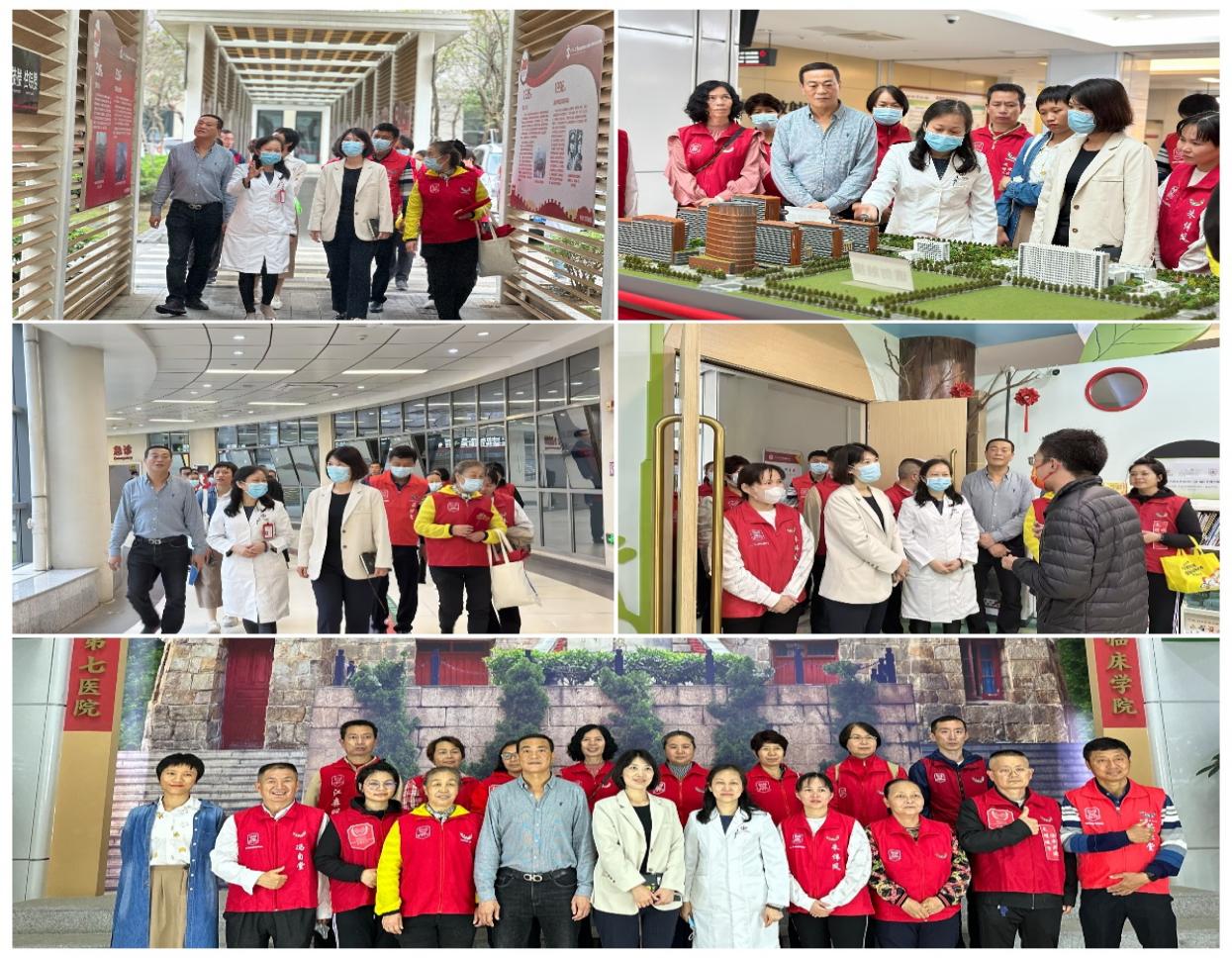 志愿者表彰大会结束后,参会者一行人参观了中山七院风雨连廊、健康U站圆台、院史馆、爱心厨房和儿童关爱空间。
