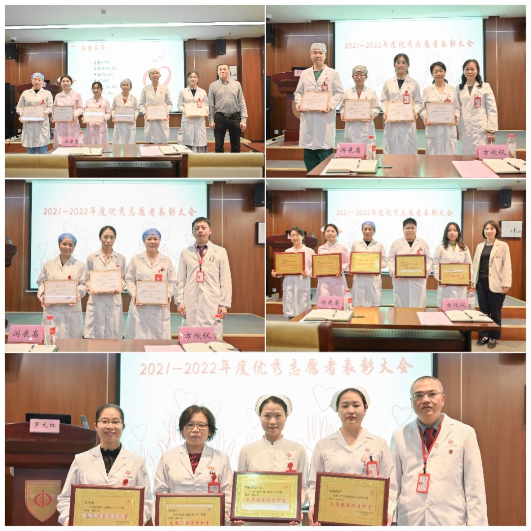本次优秀志愿者表彰大会对院内的优秀志愿者、职工爱心车队优秀志愿者、健康U站优秀管理者、健康U站卓越志愿者、健康U站优秀志愿者和志愿服务优秀科室进行了表彰。