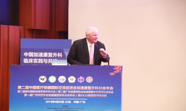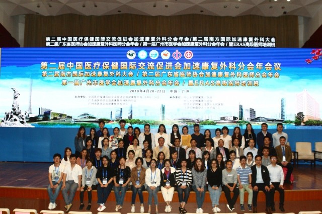 2018年4月20-22日,第二届中国医疗保健国际交流促进会加速康复外科学分会年会、第二届广州国际加速康复外科大会、第二届广东省医师协会分会年会、第一届广州医学会加速康复外科分会年会暨ERAS高级医师培训班在广州白云国际会议中心举办,会议邀请了“ERAS之父”--来自丹麦的Henrik Kehlet 教授等国外著名专家参与,并汇集了大量国内著名的加速康复外科专家,包括普外科、神经外科、泌尿外科、胸外科、骨科、麻醉科、护理等。