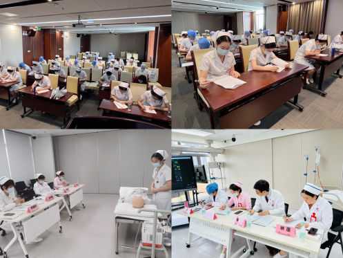 比赛由理论考核和操作技能两部分组成,竞赛顺序以抽签方式决定,护长根据抽取的临床案例,有序安排护士进入考场。采用OSCE赛道式考核形式,以病例为载体,以护理工作流程为路径,病例贴近临床,涵盖不同护理操作项目,主要考核选手专业知识、操作技能水平、病例分析能力、健康宣教能力及模拟真实临床情境思维能力。