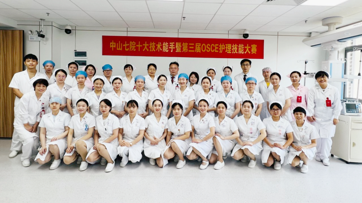 为提高我院护士知识应用能力、临床思维能力、操作执行能力、分析和解决问题能力及人文关怀能力,以赛促学,以赛促改,提高医院整体护理水平,9月1日,我院护理教研室举办了中山七院十大技术能手暨第三届OSCE护理技能大赛,党委陈起坤书记、护理部许红璐主任及器官捐献办公室刘琼珊副主任参加开幕式。陈书记为选手们进行赛前鼓励,他充分肯定了举办护理技能大赛的意义,并对选手们提出殷切希望,不仅要拥有高超的护理技能,更要做有温度,充满人文情怀的高技能护理人才。他最后祝愿每位选手都取得自己最好的成绩,预祝这次护理技能大赛取得圆满成功。