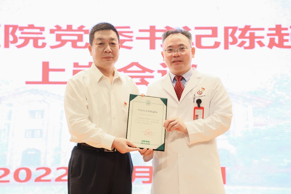 潘蓉副部长宣读了中共中山大学委员会关于任命陈起坤同志为附属第七医院党委书记的决定。