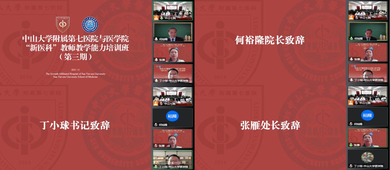 为全面贯彻落实教育部为“新医科”高等教育改革的战略部署,加强我院医学教育师资队伍的建设和发展,培养以岗位胜任力为导向的、具备先进教学理念和方法的师资人才,我院与医学院联合开展的“新医科”教师教学能力培训班(第三期)于2022年11月5日成功在线举办,本次培训班开幕式由我院张常华副院长主持,学校教务部张雁处长、医学院丁小球书记、医院何裕隆院长和陈起坤书记出席发言。