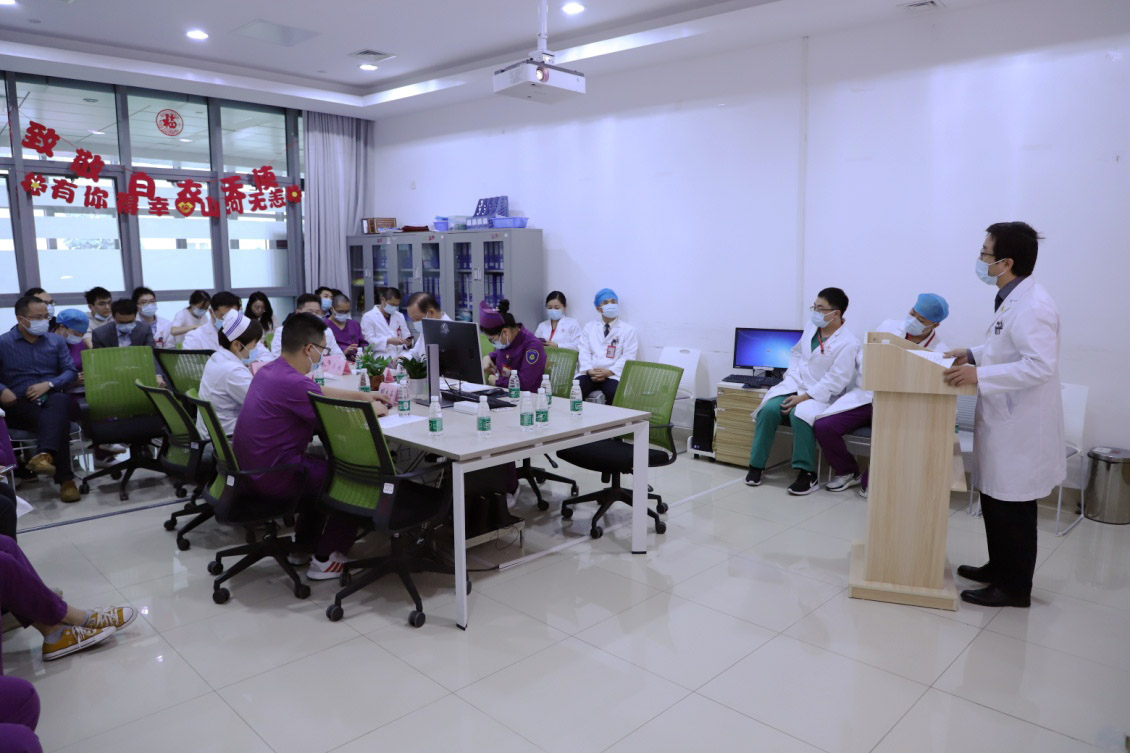 张常华副院长对急诊科全体医务人员在抗疫工作中的表现给予充分肯定,并提出,作为中山七院的一名医务工作者,一定要践行“树中大情怀,建世界名院”的理想,不断提高自身的综合素养,眼界要更加开阔,与学科和医院同心、同向、同行。