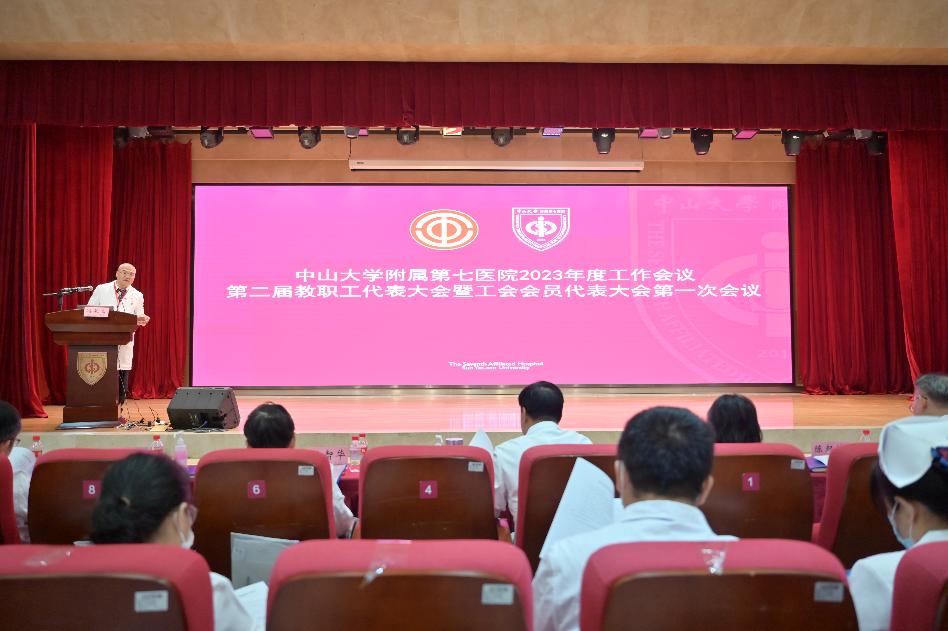 2023年7月28日-29日,中山大学附属第七医院(下文简称中山七院)召开2023年度工作会议、第二届教职工代表大会暨工会会员代表大会第一次会议(下文简称“双代会”)。中山七院院长何裕隆教授作《医院工作报告》。会上同时作《医院党风廉政建设专题报告》《医院财务工作报告》《第一届教代会、第一届工会工作报告》等报告,相关制度文件均经大会审议表决通过。大会选举产生中山七院第二届教代会常务委员会委员、工会委员会委员、工会经费审查委员会委员,表决通过女工委员会委员、福利工作委员会委员、提案工作委员会委员。