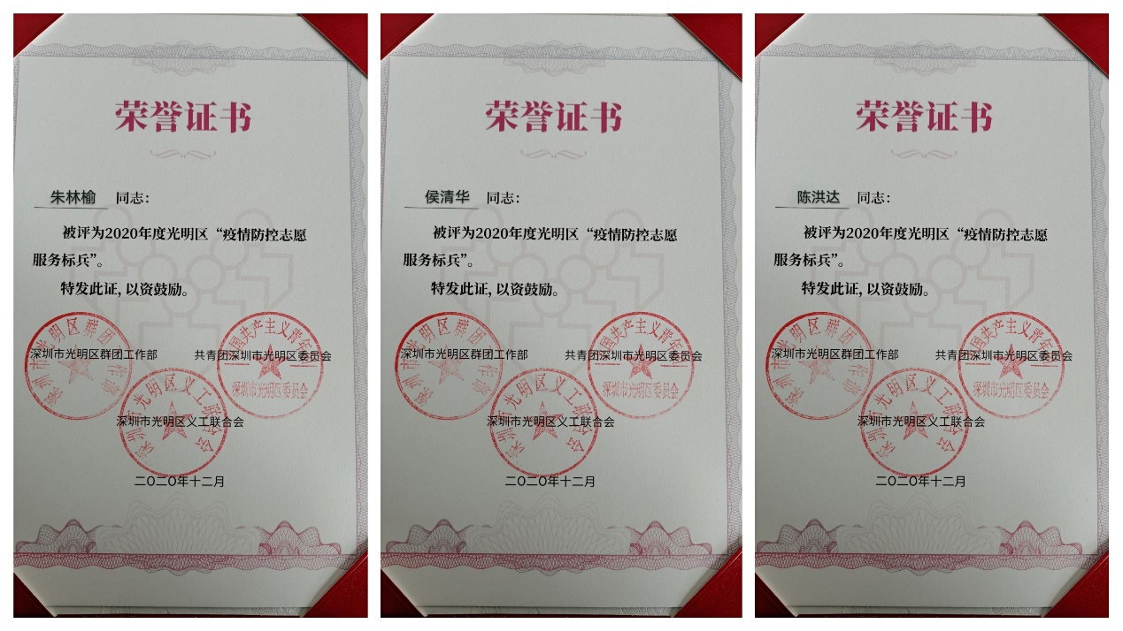 大会表彰了2020年度光明区志愿服务标兵、优秀志愿者、最美战疫志愿者等荣誉称号,我院医务志愿者神经医学中心侯清华副主任(204.78小时)、中医科陈洪达主治医师(170.09小时)、皮肤科朱林榆副主任医师(161.44小时)荣获“2020年度志愿服务标兵”荣誉称号。(括号内为累计志愿服务时长)