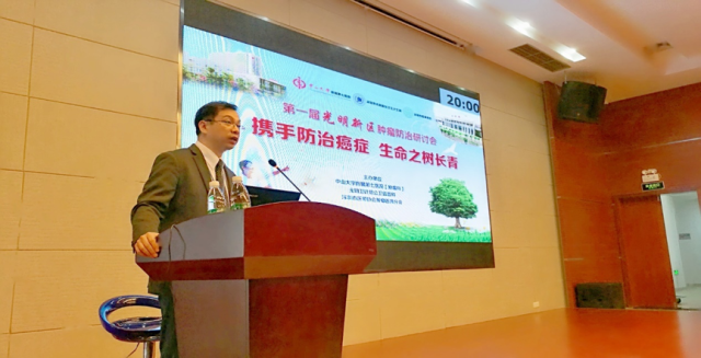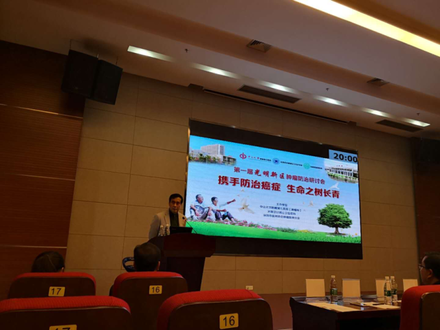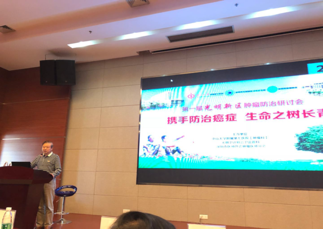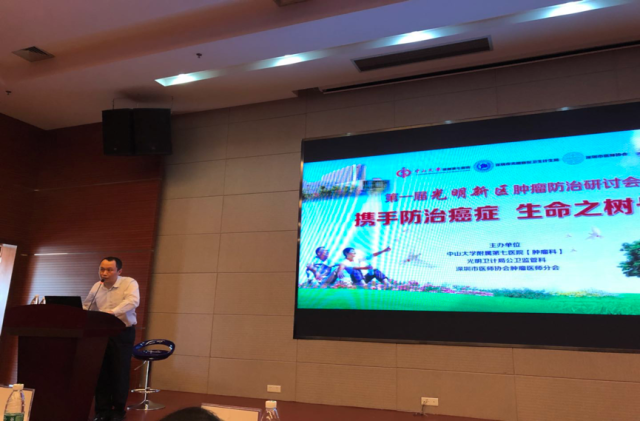 2017年12月1日,在中山大学附属第七医院全院上下迎接开业之际,由肿瘤科倡议,中山七院联合深圳市光明新区卫计局及深圳市医师协会肿瘤医师分会,联合举办“第一届深圳光明·社区肿瘤防治研讨会”,会议以“携手防治癌症,生命之树常青”为主题,以中山七院肿瘤科、消化病中心、普通外科、放射科、超声科以及医学检验中心等科室的肿瘤专家为主体,联合光明新区人民医院、中心医院以及40家社康中心的肿瘤医务工作者,共同研讨肿瘤社区防治的必要性、可行性和深远意义等重要内容。