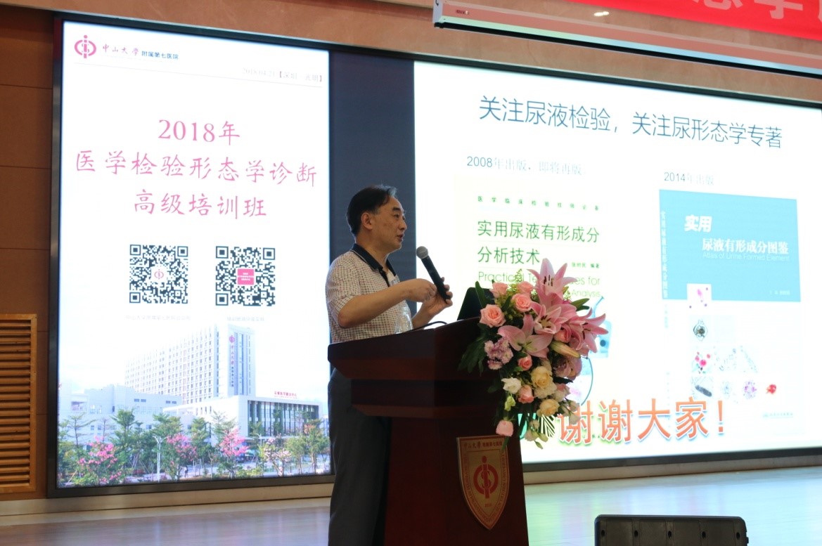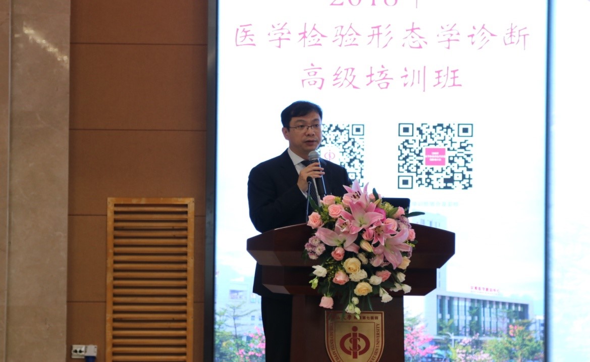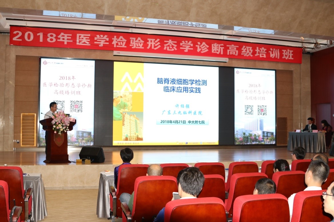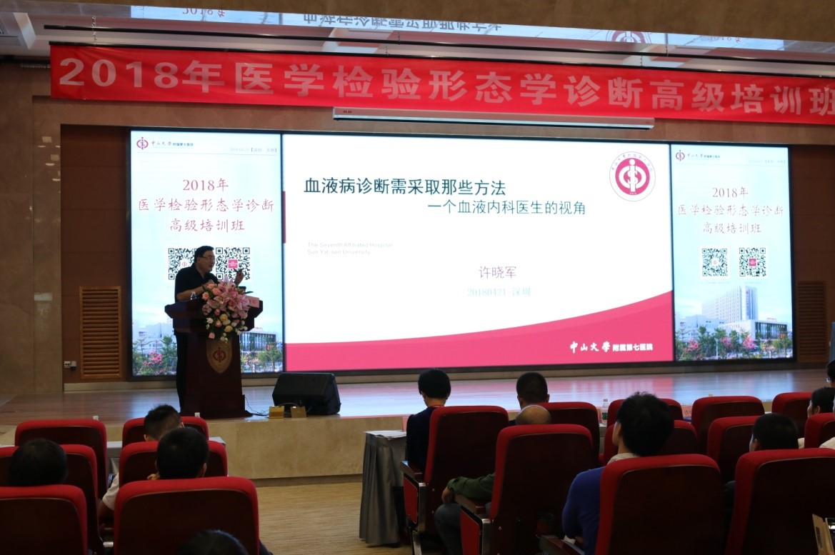 2018年4月21日,中山大学附属第七医院(简称中山七院)举办医学检验形态学诊断高级培训班。中国医学科学院血液病医院形态室肖继刚教授、北京协和医学院临床检验诊断学系血液与体液教研室组长张时民教授、广东三九脑科医院检验医学中心主任许绍强教授,中山七院儿科主任陈纯教授、血液科许晓军主任医师等亲临授课,全国200多名学员参加培训。中山七院检验科主任罗招凡博士主持培训活动。