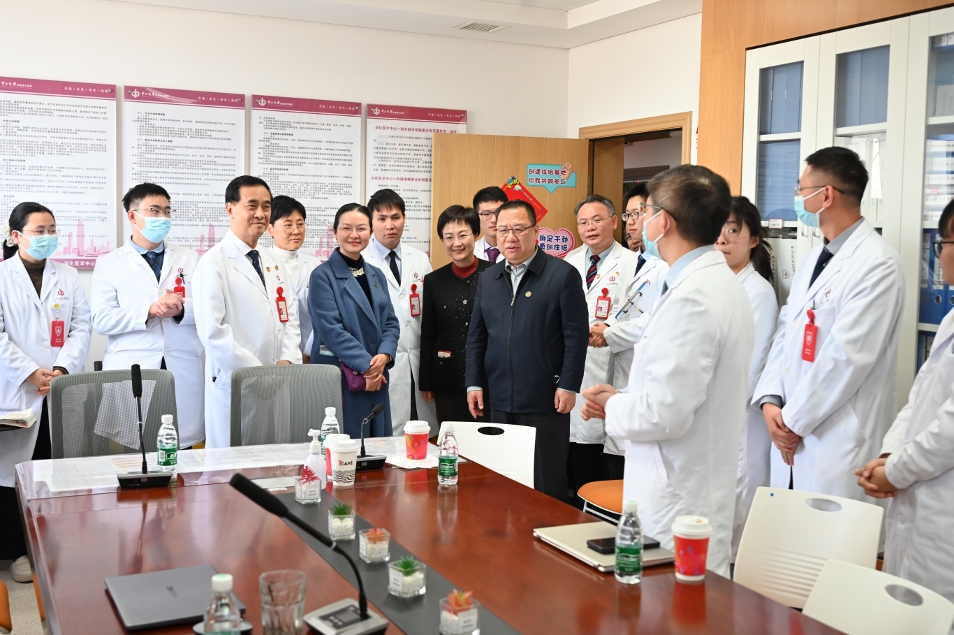 律回春渐万象新,暖阳倾辉照光明。在农历乙巳蛇年春节即将到来之际,1月13日下午,中山大学党委书记朱孔军一行到中山七院开展新春慰问,向全体医务人员、教职员工致以节日问候和新春祝福。中山大学党委副书记张琪、党委组织部部长杨晓萌、医院管理处处长叶伟、校长办公室副主任黎贞安等同志参加慰问,中山七院院长何裕隆、党委书记陈起坤及医院党政领导班子其他成员、工会负责人、学科带头人、科主任代表和相关职能部门负责人陪同。
