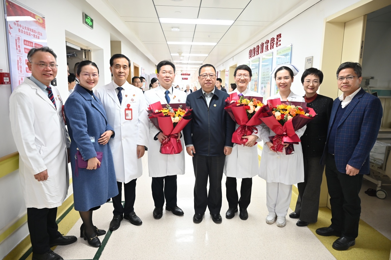 走访慰问期间,朱孔军书记边听取介绍,边咨问了解相关工作和情况,边肯定中山七院2024年的各项工作,并对全体医务人员在过去一年里的辛勤付出表达了由衷的感谢。他表示,中山七院在短短数年之内,医、教、研、管、文全面发展,取得了可喜的成绩,实属不易。他希望医院依托二期建设契机,面向国家重大战略和粤港澳大湾区发展需求,与中山大学医学院进一步紧密协作,持续提升医疗服务水平,护佑人民健康,助力学校事业发展。他鼓励大家未来更需努力奋进,以更加饱满的热情和更精湛的医术,为患者提供更优质的医疗服务。