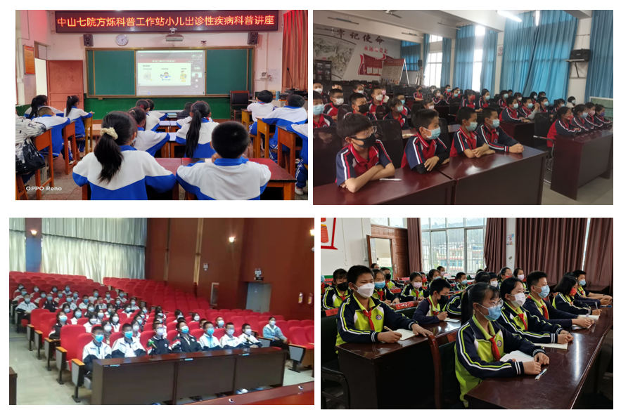 方烁科普工作站协同凤庆县相关学校领导和在前期调研中发现,这段时间正值春夏交替之际,天气晴雨相间,气温起伏波动较大,是细菌、病毒蠢蠢欲动的时机,不少同学饱受荨麻疹等皮肤疾病的困扰。针对急需解决的问题,我院程玉才医师分别为中学和小学的青少年进行《儿童出疹性疾病》和《春季常见儿科皮肤病预防》的医学科普。程医生以图文并茂、通俗易懂、生动有趣的方式向同学们讲授了多种“小坏蛋”——手足口病、水痘、麻疹、风疹等出疹性疾病的定义,出疹的方式,是否具有传染性,对我们有什么影响和具体的防治措施。针对同学们近阶段急需解决的问题进行深入而又通俗易懂的讲解。