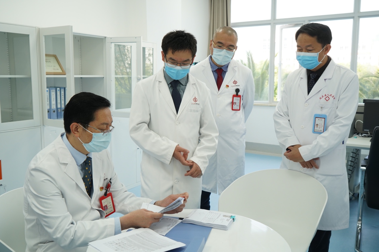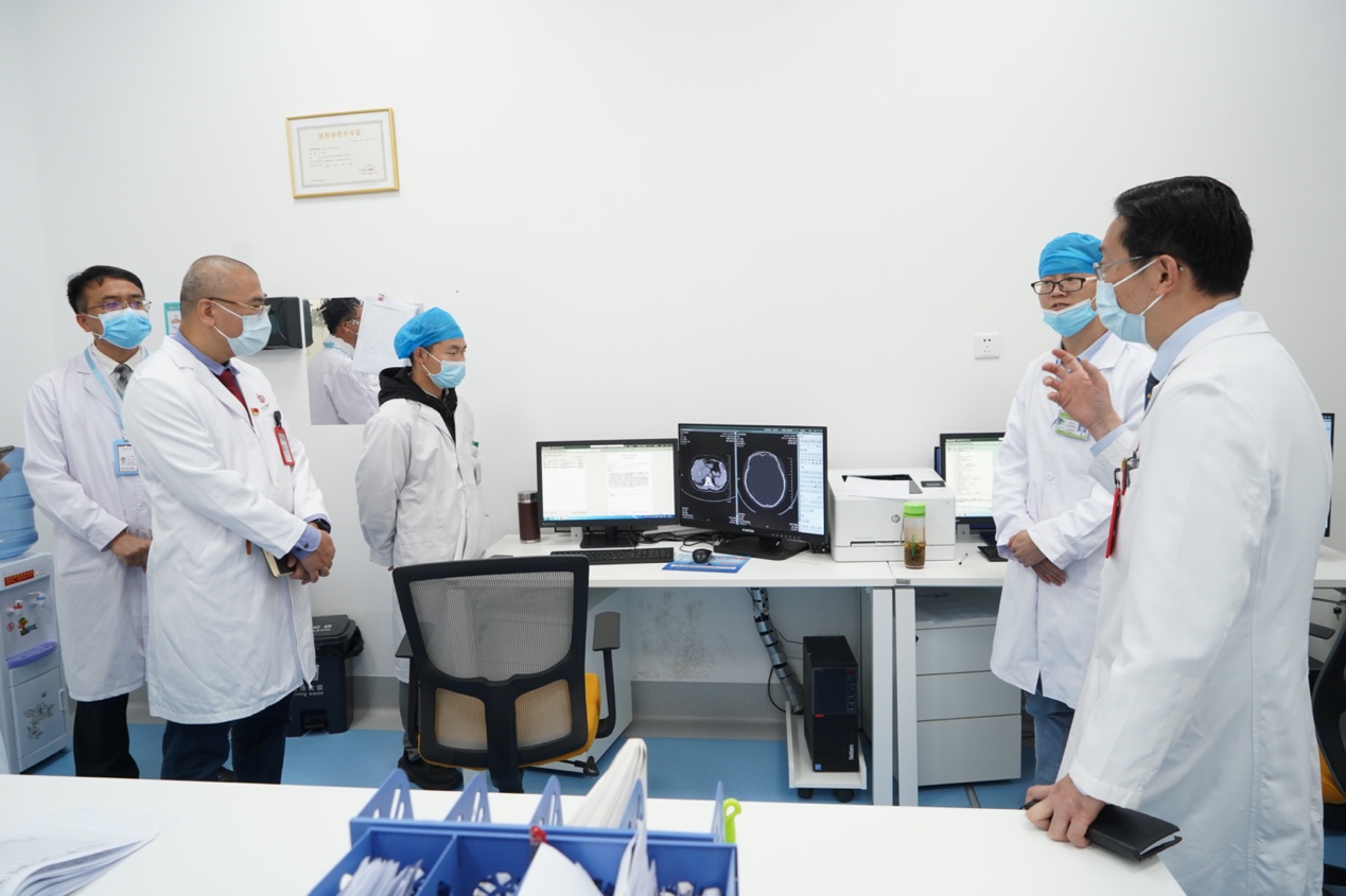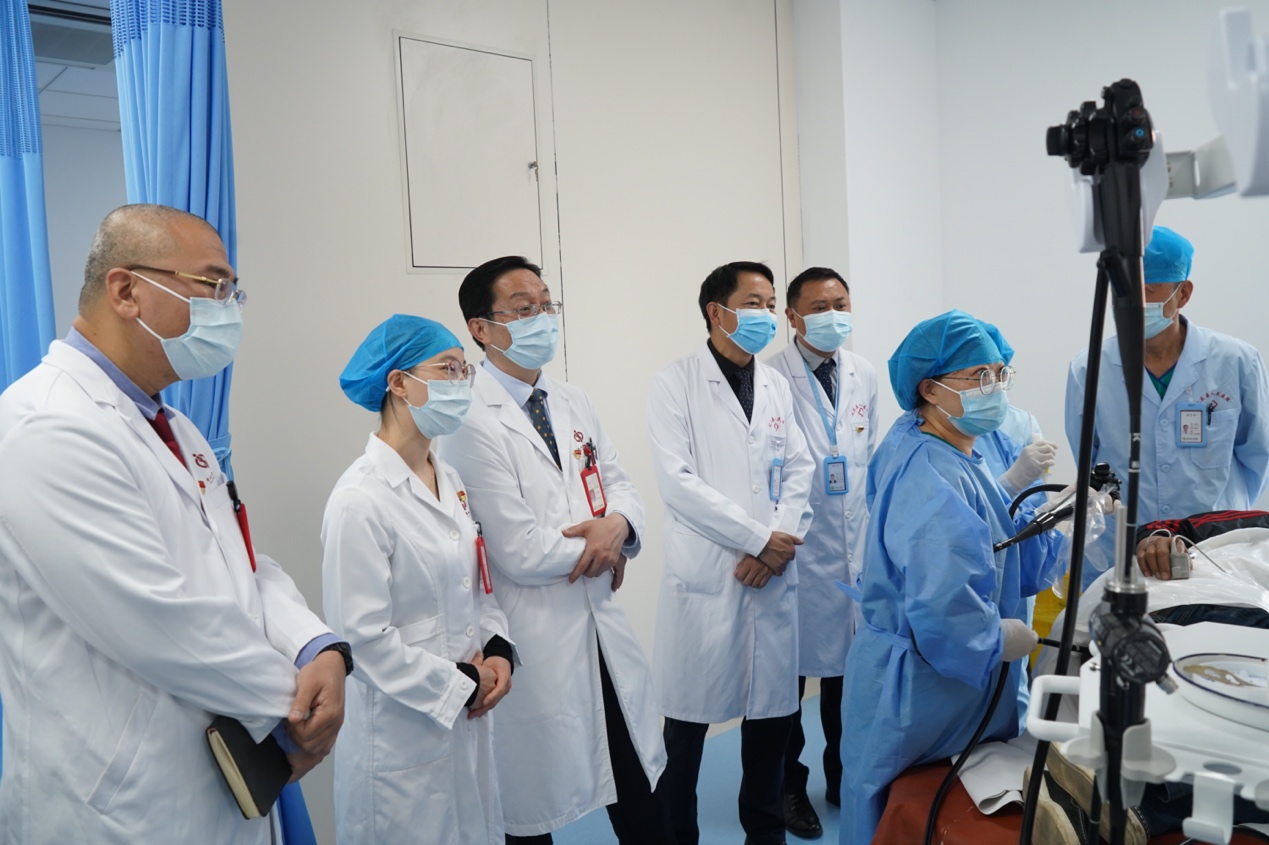 为扎实推进云南省“何裕隆专家工作站”(以下简称为“工作站”)建设工作,4月25日,中山七院游展高副书记、钟庆文处长在县医院李海院长、段立文书记等相关人员的陪同下,到县医院工作站办公室、内镜中心、病理科、放射科、手术室等相关科室进行现场调研,了解工作站工作进展。据我院驻工作站科研人员黄张森助理研究员表示,工作站工作开展顺利,得到县医院领导的重视和支持,目前已完成4万余份调查问卷,其中6千余份结合血清检查阳性的中高危人群需按照研究方案开展胃肠镜检查。工作站的积极推进和建设,为实现胃癌早筛“三位一体”科研项目的成果产出奠定扎实基础,同时有利于县医院科研管理制度的建立,形成科研与临床结合的良好态势,促进县医院医教研整体发展。