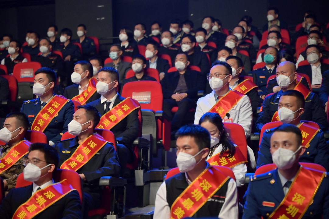 1月13日晚,中山七院党委书记陈起坤同志代表医院参加“2022深圳最美应急人和最美应急集体”发布会并上台领奖。