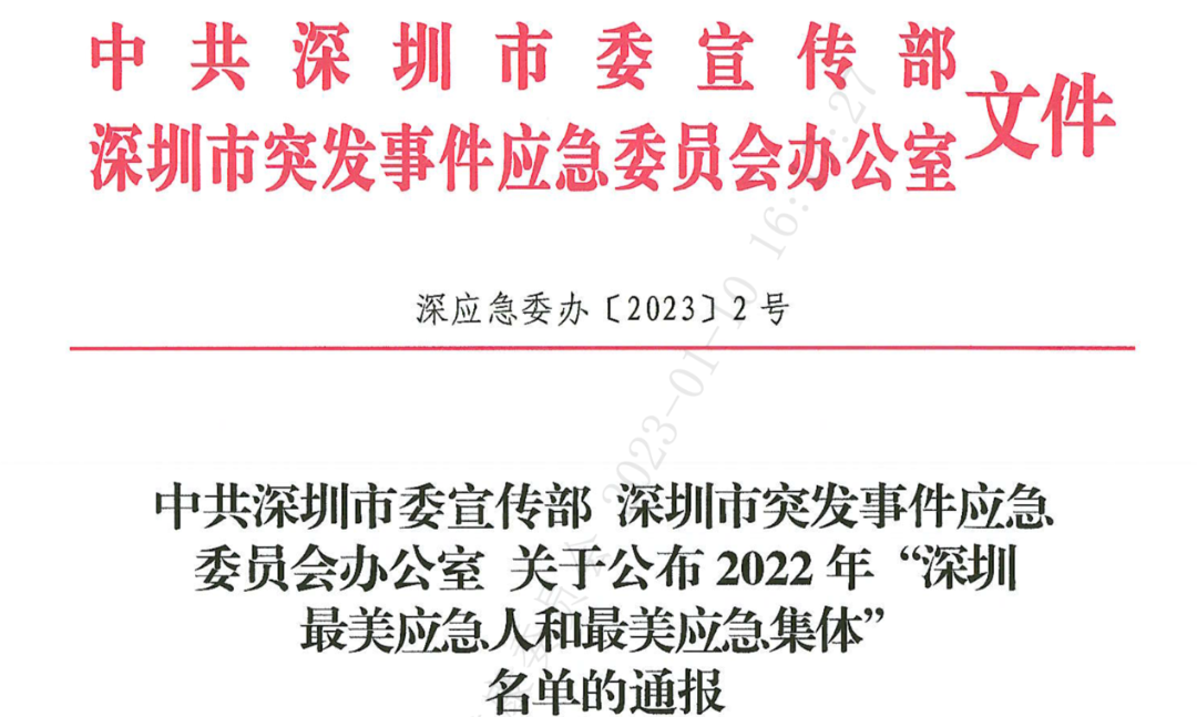 近期,深圳市应急管理局、中共深圳市委宣传部开展“寻找2022年“深圳最美应急人和最美应急集体”主题宣传活动。通过层层推荐和评议,最终确定了全市30个最美应急集体和50位最美应急人。在激烈的评选角逐中,中山七院脱颖而出荣获“2022深圳最美应急集体”称号。