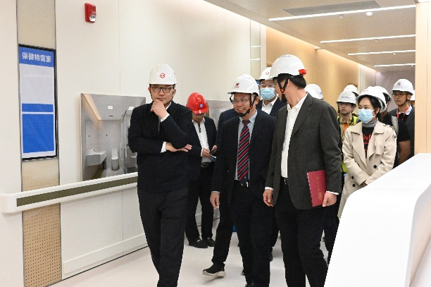 最后,邰忠智副校长和我院陈起坤书记一行在姚亮署长、高冠新主任带领下,参观了四号分中心八层精装修样板间,对样板间的电梯厅、病房、护士站、患者走道、卫生间等进行查看,并对样板间的品质给予肯定,对未来精装修工程和二期工程全面交付充满信心与期待。