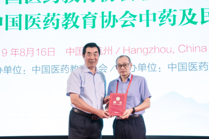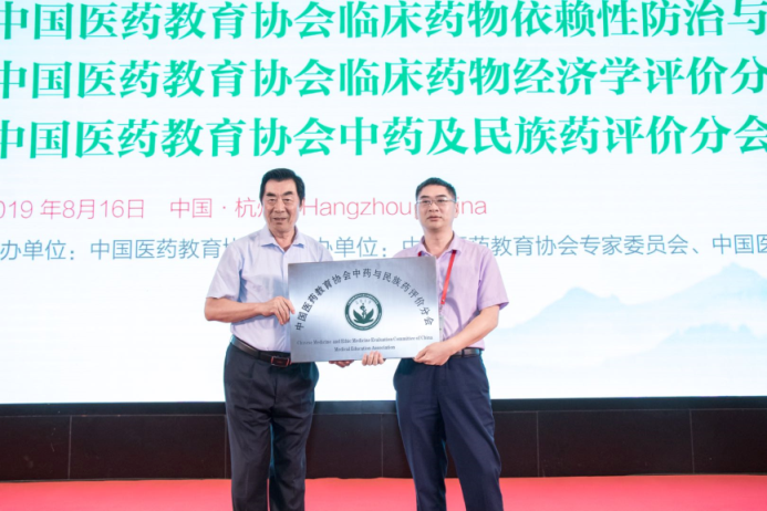中国医药教育协会黄正明会长授予我院中药及民族药分会牌匾