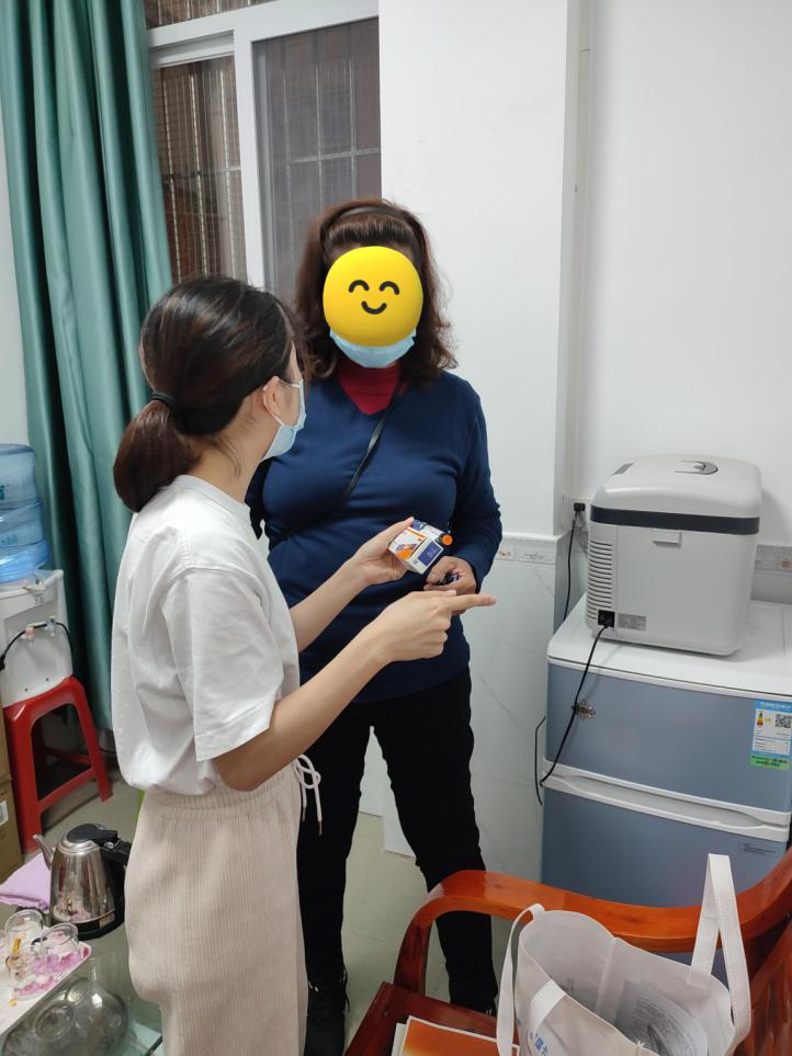在随访期间,腹透护士们查看了病友家腹透间的物品摆放、紫外线灯的安装使用,并且观看病友的洗手操作是否规范,查阅了病友透析日记本的记录情况;对病友的血糖、血压、尿量等进行了详细询问,并指导病友进行正确的测量及登记;洪玲医生检查了病友的出口处皮肤,强调规范换药的重要性,并指导病友正确用药,重点告知按时用药的重要性。同时了解了该病友因视力不佳等原因造成的自我护理方面的难点,并提供了个体化的指导。
