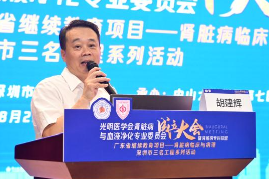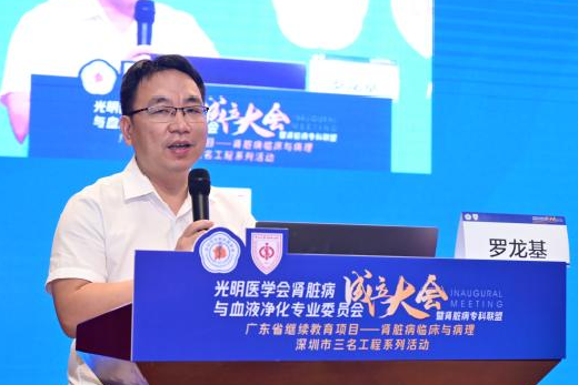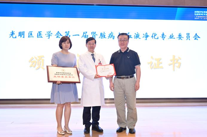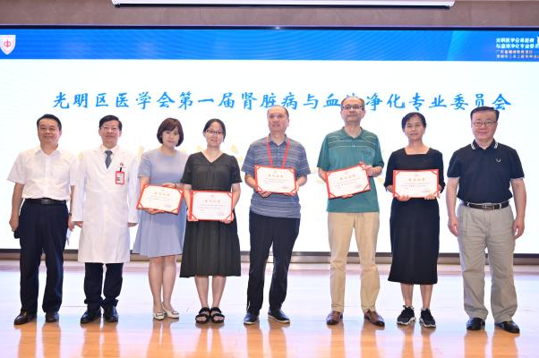 8月28日,深圳市光明区肾脏病与血液净化专业委员会和肾脏病专科联盟(以下简称“专委会”)成立大会在我院召开。光明区卫健局副局长罗龙基、光明区医学会会长刘伟平、光明区医学会秘书长胡建辉、中山七院副院长郑智华、中国科学院大学深圳医院肾内科主任王港、血液净化中心主任宋丹、深圳市宝田医院肾内科主任刘秀华等出席会议,参会的还有第一届专委会的拟任委员。