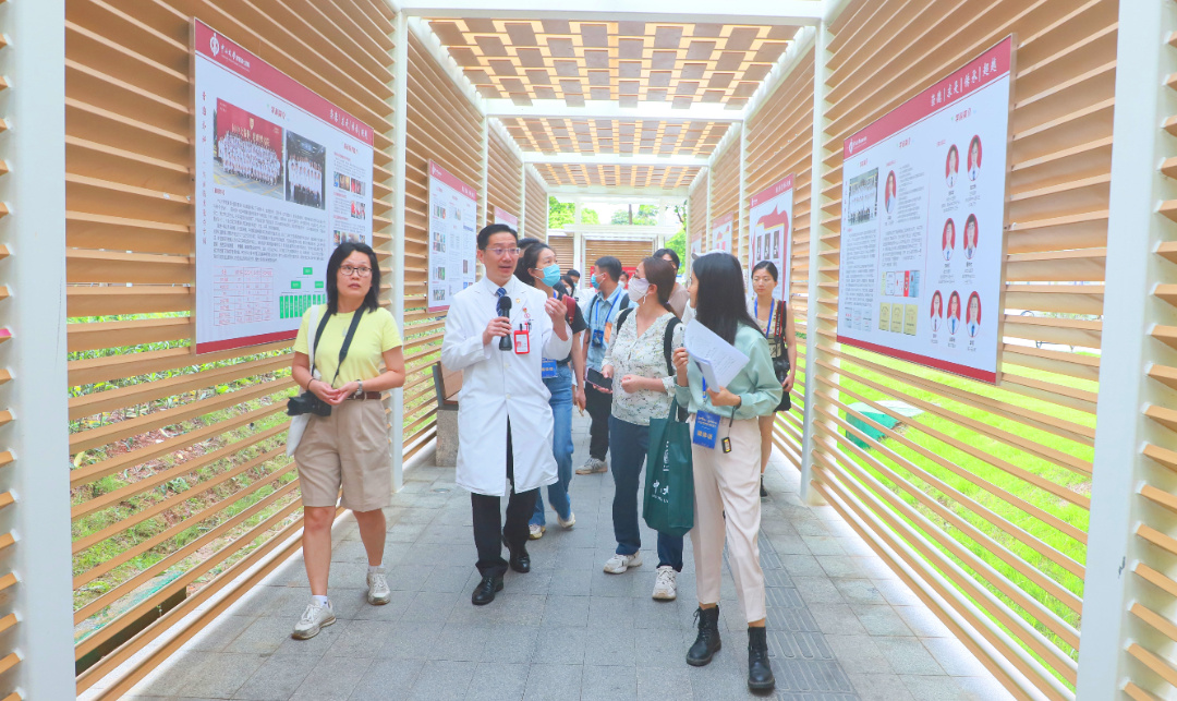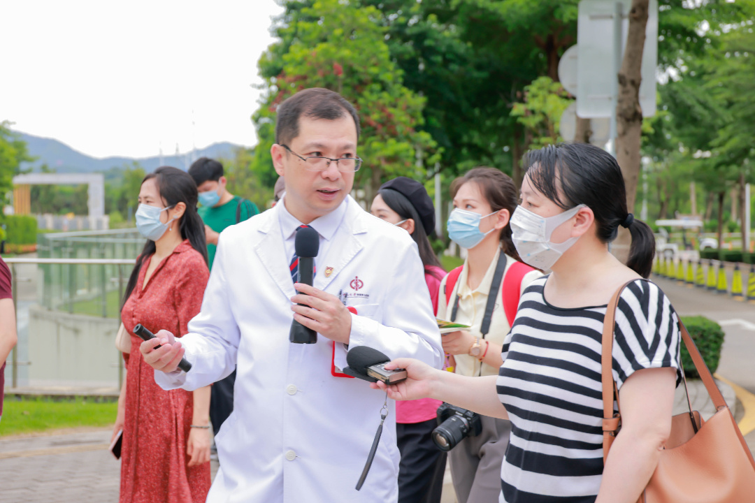 6月18日-19日,中山大学举办深圳校区媒体开放日活动。6月18日下午,在中山大学宣传部的组织下,中央广播电视总台大湾区之声、中国教育报等22家媒体近50名记者走进中山七院,共同实地感受医院高质量发展成果并就此进行采访交流。