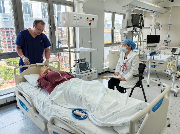 培训班根据国家脑损伤评价医疗质量控制中心的培训要求,采取小班教学模式,包括理论授课、床旁带教和模拟教学三部分。首都医科大学宣武医院宿英英教授讲授了脑死亡培训的十年实践;中山七院神经医学中心胡鸣一主治医师带来了临床判定的理论知识及质控标准的授课,凌耿强副主任医师带领学员在EICU进行了床旁带教,许晓伟副主任医师在医院临床能力培训中心为学员们带来了脑死亡临床判定的模拟教学课程。课程最后对学员进行了理论与技能操作考核,并在解析和答疑中与学员深入交流,完成了授课-评价-反馈的全流程培训。