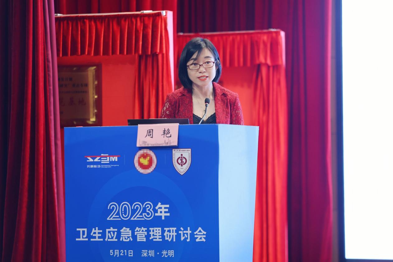 广东省疾病预防控制中心副主任李艳致辞。她表示,广东省疾病预防控制中心一直重视卫生应急管理事业,组建了专业的应急队伍,在过去几年应对处理了新冠病毒等重大卫生应急事件,守护着人民的生命安全,这一切都离不开疾控和医院系统同舟共济、无私奉献和勇敢担当。希望今后各系统加强合作,共同提高应急响应能力,为广东省乃至全国的卫生应急工作贡献力量。