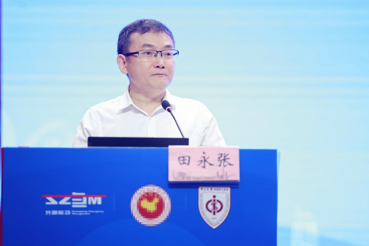 深圳市卫生健康委员会应急办副主任田永张致辞。他强调,发展和安全是一体之两翼、驱动之双轮。近年来,深圳市贯彻落实习近平总书记系列重要指示精神,在省卫健委和市委、市政府的正确领导下,以健全卫生应急工作体制为抓手、构建长效卫生应急管理机制为目标,有效提升了市卫生应急工作的能力和水平。确保人民群众生命安全和身体健康是一项重大民生任务,在加快构建新发展格局中,卫生应急管理部门义不容辞,坚决扛起防范化解重大安全风险的政治责任。