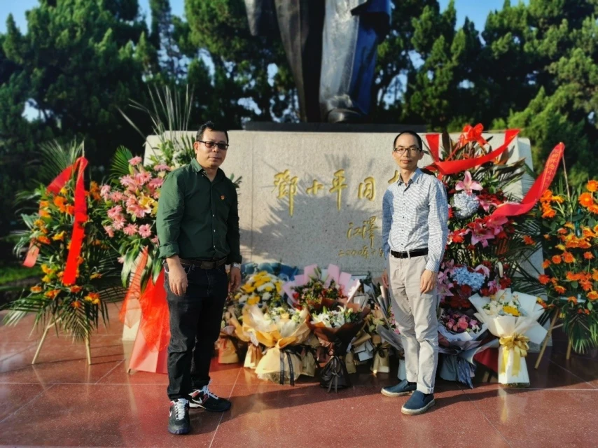 邓宇斌教授与严乐平特聘副研究员在邓小平雕像前献花合影