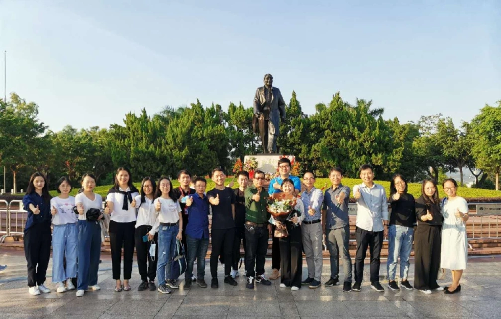 最后一站党员们步行前往莲花山公园瞻仰了邓小平铜像。莲花山公园是国家重点公园、国家红色旅游示范基地、广东爱国主义教育基地、深圳市党员教育基地等,党和国家领导人习近平、胡锦涛、李克强等都曾到访公园。小平铜像广场位于莲花山之巅,海拔100米,是深圳最高的室外平台。雕像的造型是邓小平同志大步向前迈步的姿态,寓意深圳改革开放的步子一步步向前迈进。