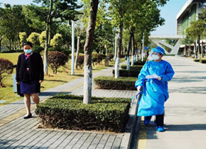 9日早8点,检验科一名参与核酸检测同事上班入院经过门诊预检分诊时,红外线测温仪发出报警,护士进一步询问职业史及症状,耳温枪复测体温为38.1℃,护士立即指引其至指定临时隔离点等待,做好工作交接并通知安保人员沿路清场后,护士沿指定路线将检验科同事转运至发热门诊。