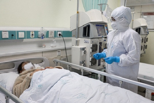 一名血透门诊患者进行血透过程中出现发热,医务人员按应急处置流程立即将患者安置于缓冲病区。
